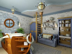 Студия HomeLine в Тольятти, может обустроить детскую в подобном стиле, чтобы ребенок чувствовал себя путешественником, капитаном корабля и т.п. Все, что для этого нужно, это правильный подбор отделки стен и соответствующие аксессуары. Например, наиболее подойдут белые, голубые и синие сочетания тонов, которые можно передать не только с помощью краски, но и применяя различные виды текстиля.