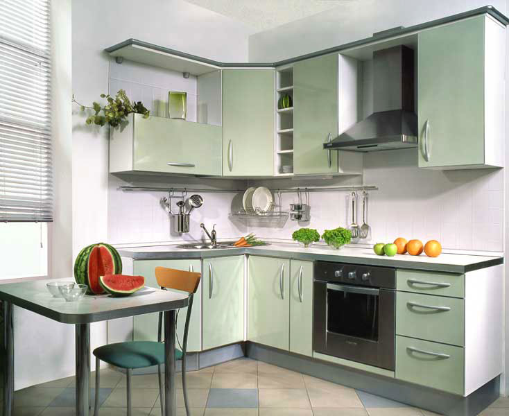 Потребуется научиться использовать пространство максимально рационально. На углах можно поставить угловые шкафы. Сделанная мебель для кухни на заказ может быть изготовлена под определенный стиль помещения, компанией в штате которой присутствуют опытные мастера. Профессионалы могут создать кухонный гарнитур который сможет исполнять несколько функций. Обеденный стол будет убираться, мойка может прикрываться столом для разделки и так далее.
