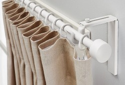 - Стоит обращать внимание на размер и количество кронштейнов – от этого будет зависеть длина портьеры. Станет ли она весить ниже подоконника либо будет доставать до пола.