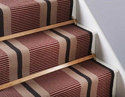 Лестничный ковролин подходит для покрытий поверхностей различного типа. К ним относится дерево, керамика, металл, камень. Для того, чтобы покрытие прослужило максимально долго, при его выборе необходимо учитывать определенные технические характеристики. Поскольку на лестницах изделие подвергается повышенным нагрузкам, специалисты советуют остановить выбор на усиленном ковролине, имеющем для удобства определения специальную пиктограмму. Нежелательно использовать покрытие с полностью натуральным составом. Оно более подвержено загрязнениям и представляет больше проблем в уходе.