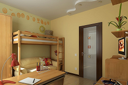 В детскую не стоит устанавливать глухие двери и склонится к установке дверей со стеклянными вставками, это позволит контролировать комнату, и самому ребенку в маленьком возрасте не так страшно будет оставаться за закрытой дверью.