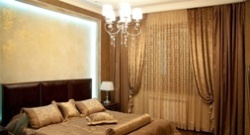 Важным элементом общего дизайна спальни есть шторы, к их выбору стоит подойти ответственно, ведь кроме того, что они защищают помещение от прямых солнечных лучей, посторонних глаз, еще должны создавать спокойную уютную атмосферу. Нужно обратить внимание на такие нюансы, как цвет штор, материал изготовления, наличие рисунков и т. д.