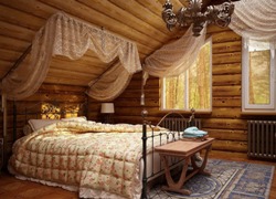 Эта поверхность спальной комнаты отделывается традиционно побелкой с применением различных красителей. Желающим отделать потолок более современными материалами можно посоветовать окрасить поверхность водоэмульсионной краской без каких-либо излишеств. Украсить потолочными балками с осветительными приборами.