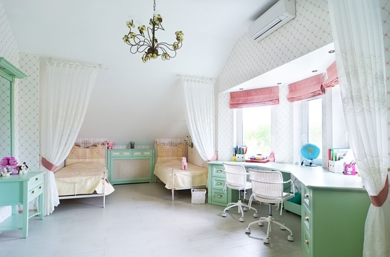 Безусловно, в своей комнате ребенок проводит, достаточно много времени и цветовая гамма штор в комнате, стен, а также детская мебель от производителя, достаточно сильно влияет на его настроение, интеллектуальное развитие, психику и в некоторых случаях и на память. Не нужно оформлять детское помещение в ярких тонах, например если в комнате ребенка будут окружать только зеленые, красные и желтые цвета, то со временем у него может возникнуть раздражительность, беспокойство, также ребенок станет капризным. Яркие детали все же не стоит исключать, однако их желательно разбавить пастельными оттенками.
