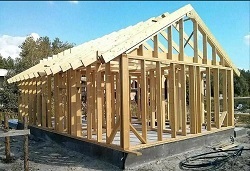 Основная часть строительства – монтаж несущих стеновых балок и элементов каркаса из древесины или металла. Собирается каркас, который формирует объем будущего дома.