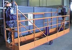 Стальные балочные сооружения с противовесами либо анкерными крепежами обычно монтируются на крыше. Вертикальное перемещение люльки осуществляется электрическим приводом. В устаревших версиях с комплексами блоков предусматривается только ручное передвижение.