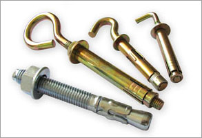 Имеются клиновые анкера: кислотоупорные, горяче- и электро-оцинкованные, которые оборудованы специальным клином, расширяющимся в процессе монтажа и обеспечивающие также надежную фиксацию. Для монтажа данного анкера его нужно установить в подготовленное отверстие, забить молотком и дополнительно затянуть гаечным ключом. К такому типу крепежей относится и винтовой анкер, который имеет утапливаемую винтовую головку и благодаря этому позволяет его использовать для установки оконных и дверных коробок.