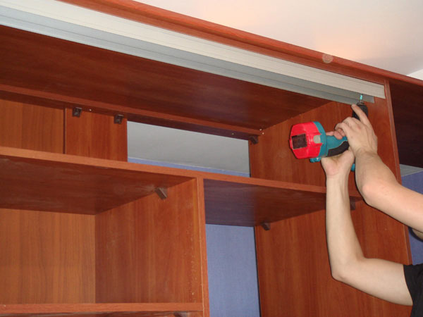 Для того, чтобы сделать стенки шкафа, приобретите плиты ДСП либо ЛДСП, а если вы будете делать гардеробную из части выбранного пространства, то его нужно огородить, а для этого необходимы профильные направляющие и гипсокартон. Разрежьте материал, на котором нужно начертить верх и дно шкафа, а также стенки и полки, для резки используйте электролобзик. Затем соберите шкаф. При использовании гипсокартонной конструкции необходимо к стенам сначала прикрепить брусковый или же металлический каркас. Смонтируйте гипсокартон, применяя саморезы, их шляпки вместе со швами зашпаклюйте, затем можете окрасить либо оклеить обоями.
