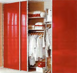 Прикрепив все листы к поверхностям, произведите заделку всех швов, а сверху и низу закрепите дверном проеме направляющие, в которые установите дверь, Также нужно установить одежную штангу и разделите пространство шкафа на несколько частей. В завершение данную мебель нужно отделать фурнитурой, прикрепить каркасы выдвижных ящиков. Покрасив шкаф можно считать данную работу завершенной.