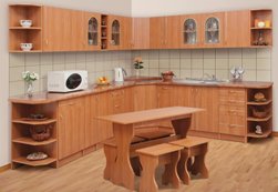 Длительность эксплуатации того или иного мебельного элемента, как и всей мебели на кухне в целом, зависит непосредственно от материала, который использовался для их изготовления. Кухни, выполненные из древесины, считаются мебелью представительского класса, отличительная их черта – высокое качество и экологичность. Однако требуют они особого подхода, ведь очень плохо переносят повышенную влажность, да и заплатить за деревянную кухню понадобиться немалую сумму.