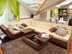 - Если пространство небольшое, то лучше выбирать угловой диван. На нем можно разместить 5-6 человек гостей и он сэкономит место.