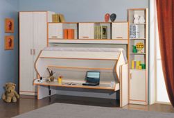Одним из наиболее популярных типов такой мебели, является стол-кровать. То есть, в дневное время это стол за которым можно делать уроки, а в ночное – кровать того или иного типа.