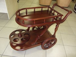 По конструкции тележки бывают всевозможных видов, это изделия с бортиками ограничителями, удобными полочками для перевозки бутылочек, подносом, который по надобности снимается. Выпускаются эти кухонные приспособления даже со встроенным баром. Для удобства пользователям предлагаются складные тележки. Такие варианты хороши тем, что при хранении не занимают много места.