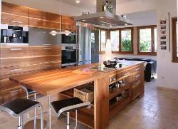 Любители всего натурального большее предпочтение отдают столешницам из дерева, имеющим уникальную текстуру и вид. Однако нынешние производители для создания деревянных столешниц склеивают несколько щитов, заранее пропитанных специальными средствами. Для создания столешниц зачастую применяют доски из: