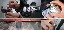 - Если нет других вариантов, как открыть замерзший замок в автомобиле, можно воспользоваться WD-40, жидкостью для очистки стекла или тормозной жидкостью. Они эффективны при любой температуре. WD-40 желательно не использовать для центрального замка, а при обращении с тормозной жидкость нужно избегать ее попадания на лакокрасочное покрытие.