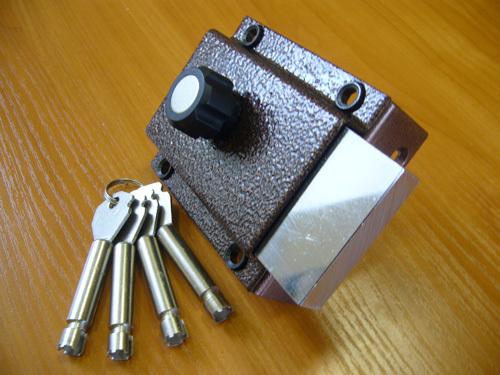 Нажав на кнопку, имеющуюся на корпусе замка, освободите задвижку. Затем расположенное на тыльной стороне запорное устройство нужно совместить с соединительным стержнем и закрепить на монтажной пластине замок с помощью винтов. Закрыв дверь и установив запорный механизм, в положение закрыто, на дверной коробке нужно отметить места соприкосновения языка задвижки, после чего, воспользовавшись запорной планкой, на коробке нужно начертить ее контур. По этому контуру в коробке нужно выбрать паз с помощью стамески и по завершении данной работы установить запорную планку. Все замок можно считать установленным.
