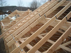- Устройство стропильной системы. Стропильная конструкция будет нести на себе всю нагрузку кровельного материала и влияние окружающей среды. Она должна быть прочной и без труда переносить сильный ветер и вес снежной массы в зимнее время. Поэтому следует особо тщательно подбирать материалы для ее постройки. Также нужно иметь в виду, что от формы конструкции зависит как в конечном итоге будет выглядеть крыша.