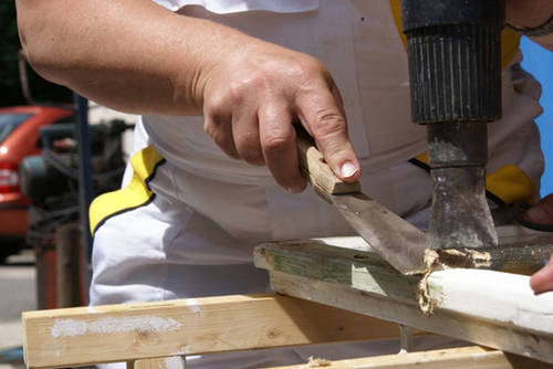 При таком способе старая краса снимается дрелью с 2-мя насадками, одна из которых имеет мягкую металлическую щетину, а вторая наоборот – жесткую. Щеткой с жесткой щетиной произведите первоначальное удаление краски на оконной раме, а затем поверхность отшлифуйте щеткой, оснащенной мягкой щетиной. Удалить краску можно и при помощи ножа, им снимите основной слой, а после оконную раму отшлифуйте шкуркой. Однако знайте, что механический способ требует от вас достаточно много терпения и свободного времени.
