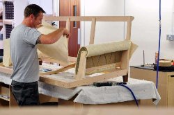 Полученные отрезы надо положить на мебель, при этом материал нужно пару раз загнуть в сторону тыльной стороны ткани, что исключит ее роспуск. В завершение в местах загиба обивка крепится к каркасу мебели скобочным степлером. Так называемые «стежки» рекомендуется делать чаще, что разрешит аккуратно и надежно прикрепить обивку на каркасе.