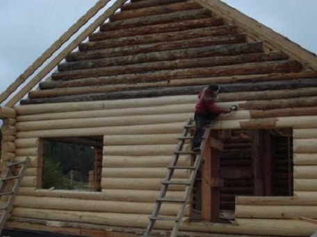 Производить шлифовку сруба сразу после возведения дома нельзя, так как он должен высохнуть и осесть. Как правило, шлифовальная работа не только позволит древесине хорошо впитывать антисептические средства, а также этим вы подготовите основу к будущему нанесению лакокрасочного материала. Также во время шлифовки бревенчатому строению не только придается первоначальный вид, но и удаляются с поверхностей колонии грибка и плесени.