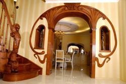 Арки в стиле модерн ничем практически не отличаются от классических изделий, разве что свод выполнен слегка пологим. Оптимально использовать арку в проемах с незначительной шириной и довольно больших размеров.