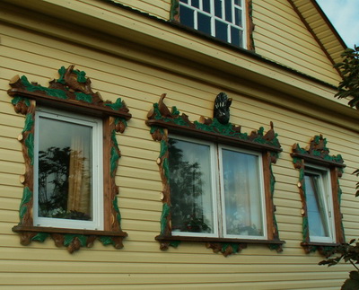 Данное украшение для загородного дома либо дачи вы можете сделать своими руками, главное набраться терпения и проявить фантазию. Готовые наличники можно оставить в первоначальном виде или же покрасить.