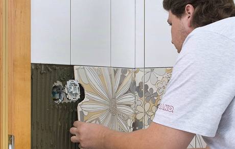 Сегодня, чтобы получить идеально ровные швы, используются пластмассовые крестики, которые устанавливаются между плитками, однако во время укладки нужно периодически строительным уровнем проверять ровность ее монтажа. Однако прежде, чем ложить плитку на стену, нужно сразу проверить ее вертикальность, а уж потом стену тщательно очистить и нанести на основу клей. По технологии укладка плитки на стену практически ничем не отличается от укладки плиточного материала на пол, но плитка зачастую начинает укладываться снизу.