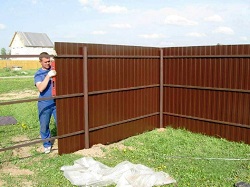 - Монтаж забора из профнастила не требует сложной подготовки и дорогостоящих инструментов. Это позволяет сократить расходы на строительные бригады и осуществить установку самостоятельно или с небольшой помощью.