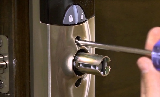 Когда все подготовлено можно приступать к установке. В отверстие вставляется замок. Если туго заходит, то можно подправить легонько резиновым молотком или обратной стороной отвертки. Вставленный замок должен идеально прилегать к торцевой части полотна, так как в противном случае двери не будут закрываться. В крепежные отверстия вкручиваются винты и хорошо затягиваются. После того как замок закреплен можно устанавливать сердечник, ручку и облицовочную панель. Самое сложное в установке замка на металлическую дверь – это подготовка, а сама работа не занимает более пяти минут.