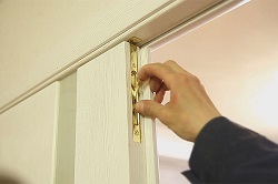 - Для скрытых дверей используются специальные алюминиевые коробки, которые монтируются в стену до финишной отделки. Важно, чтобы короб был установлен строго вертикально и горизонтально, без каких-либо перекосов. Используйте уровень на протяжении всего процесса монтажа.