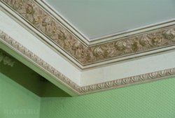 Но существует небольшой нюанс – после монтажа такого типа покрытия, между стеной и потолком остается щель. Если для ее прикрытия использовать стандартный тип багетов, прежде всего, испортится внешний вид потолка. В таких случаях, применяют пластиковый потолочный плинтус.