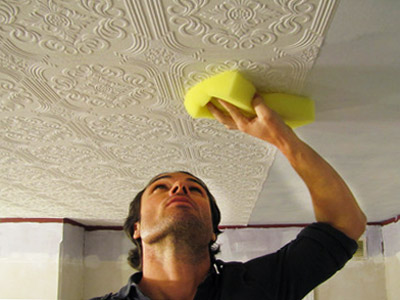 Флизелиновые обои имеют достаточно толстое полотно, с помощью которого вы сможете, недостатки полотна удалить, к тому же оклеивание потолка такими обоями производится просто. Стоит отметить, что эти обои не растягиваются и не образовываются пузыри при нанесении на них клея.