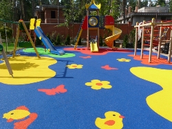 В городских условиях, когда в роли покрытия для детской площадки чаще всего выступают песок или гравий, игра на площадке нередко заканчивается испачканной одеждой или сбитыми коленями. Чтобы этого избежать, предлагается монтаж резинового покрытия.