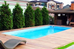 Композитный бассейн будет красиво смотреться на любом дачном участке.