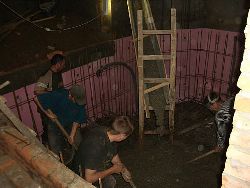 5. После полного высыхания бетона демонтируют опалубку, а на стены наносится смесь из воды и цемента, обычной малярной кистью.