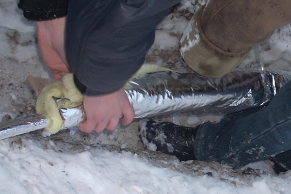 На водопровод, который подлежит утеплению, нужно намотать изоляционный материал, в большинстве случаев таким материалом являются минераловатные плиты. На данный материал сверху необходимо затем нанести защитное покрытие, таким покрытием может быть тонколистовая сталь, отличается, которая стойкостью к различным атмосферным воздействиям, а также повышенной надежностью, либо стеклоткань. После проведения всех вышеуказанных процедур, нагревательные кабели после подсоедините к электросети и подключите.